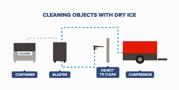 Also known as cryogenic cleaning, dry ice blasting or cleaning is a technique that uses dry ice pellets for cleaning without water, cleaning without chemicals, or replacing the manual cleaning job. The very low temperature of the pellets (-78°C or -109°F) causes the contamination to freeze and contract resulting in the easy detachment of the contaminant from the substrate. On impact, the pellets vaporize to carbon dioxide gas and an increase in volume by a factor of 700. Due to this expansion, the contaminant is lifted and separated from the base material. The pellets vaporize to carbon dioxide gas on impact, which means that only the original contaminant is left for disposal. This natural evaporation is a major advantage of this cleaning method.